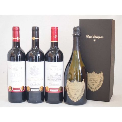 ドンペリニヨンのドンペリ白とダブル金賞受賞 赤ワイン フランス ボルドー産 ソムリエ厳選3本 計4本