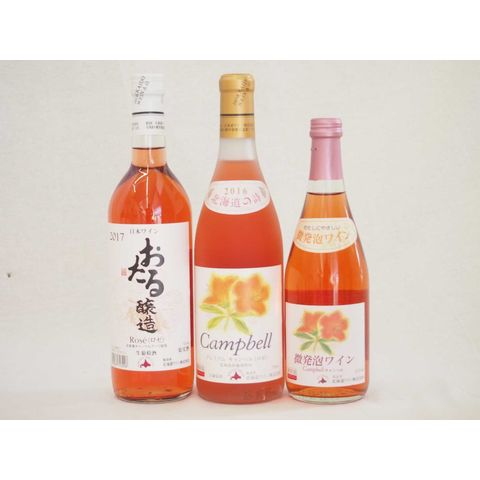 日本産葡萄100%おたるワイン3本セット プレミアムキャンベルロゼ720ml×1本 微炭酸ロゼ500ml×1本 ロゼ720ml×1本 (北海道)