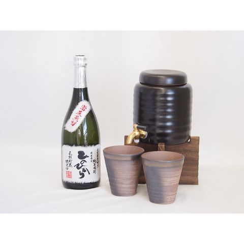 本格焼酎サーバー1000cc(18cm×24cm 1kg)三重県萬古焼き備前金彩ペアカップ(200ml×2個)恒松酒造 純米焼酎常圧蒸留ひのひかり25° (熊本県) 720ml×1本