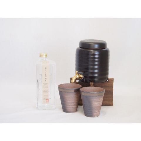 本格焼酎サーバー1000cc(18cm×24cm 1kg)三重県萬古焼き備前金彩ペアカップ(200ml×2個)黒木本店 本格米焼酎 野うさぎの走り (宮崎県) 600ml×1本