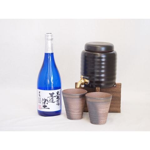 本格焼酎サーバー1000cc(18cm×24cm 1kg)三重県萬古焼き備前金彩ペアカップ(200ml×2個)恒松酒造 本格芋焼酎 黒麹仕込王道楽土 (熊本県) 720ml×1本