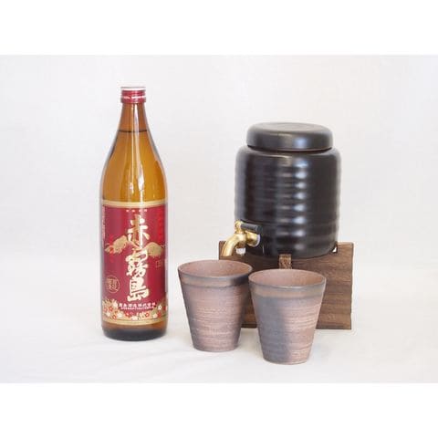 本格焼酎サーバー1000cc(18cm×24cm 1kg)三重県萬古焼き備前金彩ペアカップ(200ml×2個)霧島酒造 本格芋焼酎 赤霧島 (宮崎県) 900ml×1本