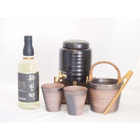 本格焼酎サーバー1000cc(18cm×24cm 1kg)萬古焼ペアカップ氷入れ竹トングセット100%とうもろこし樫樽長期貯蔵焼酎静寂の時25度(宮崎県) 720ml×1本