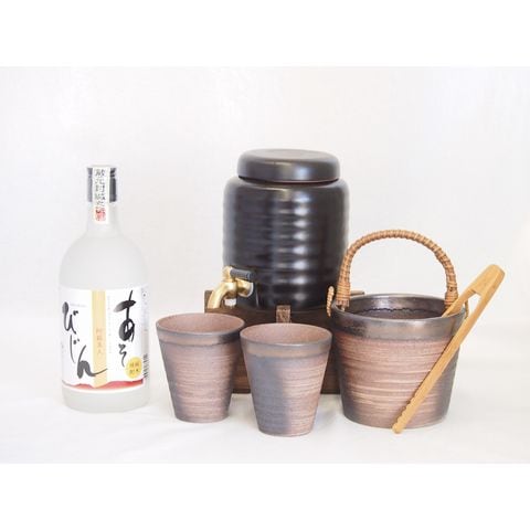 本格焼酎サーバー1000cc(18cm×24cm 1kg)萬古焼ペアカップ氷入れ竹トングセット瑞鷹 純米焼酎 あそびじん (熊本県) 720ml×1本