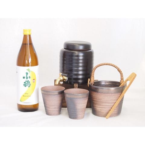 本格焼酎サーバー1000cc(18cm×24cm 1kg)萬古焼ペアカップ氷入れ竹トングセット小正醸造 果物の香り系芋焼酎小鶴ザ・バナナ 900ml×1本