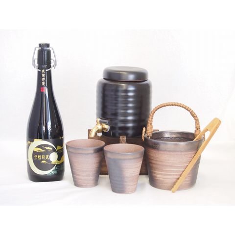 本格焼酎サーバー1000cc(18cm×24cm 1kg)萬古焼ペアカップ氷入れ竹トングセット深野酒造 本格麦焼酎 長期貯蔵決戦前夜 (熊本県) 720ml×1本