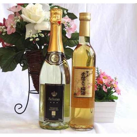 金箔ペアセット 万上 金箔入り梅酒 500ml Felistas(フェリスタス)24カラット金箔入りプレミアムスパークワイン750ml(フランス)