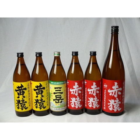 小正醸造 赤猿×黄猿×三岳 芋焼酎6本セット(紫芋あかざる900ml×2本 1800ml×1本 黄金千貫きざる900ml×2本 屋久島産みたけ900ml×1本)