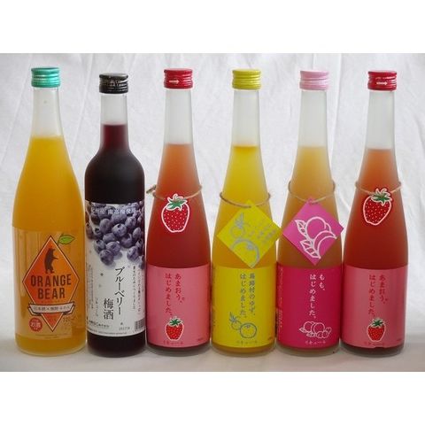 果実リキュール6本セット 紀州産 南高梅使用ブルーベリー梅酒 500ml(和歌山)・元坂酒造 日本酒オレンジ(三重県) ・篠崎