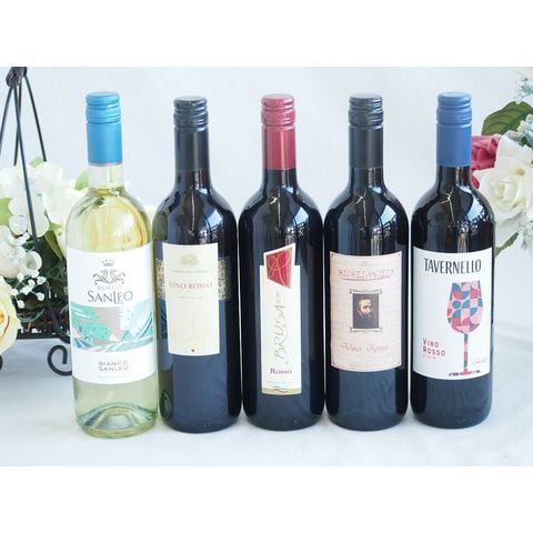 イタリア赤白ワイン5本セット ミケランジェロ赤 ブルーサ 赤 コルテ赤 タヴェルネッロ ロッソ赤 センサーレ 白 750ml×5本●●●●ミケランジェロ 750ml(イタリア) 【味わいの特徴】 美しいルビー色香り高いブーケと葡萄本来の香りを合わせ持っています。ラザニアなど肉料理リゾットやチーズにも良く合います●タヴェルネッロ ロッソ【味わいの特徴】サンジョベーゼ主体の赤ベリー系のチャーミングな香り。ほのかな酸味と果実味のバランスが良く、スイスイと飲める、バランスの良さが魅力です 味わい / 中口・中渋口●コルテ 赤 750ml(イタリア) 【味わいの特徴】 果実味豊かで適度なボリュームのある赤ワインで、トマトベースのお料理との相性はバツグン! お料理を更に引き立てる素直な味わいです。 ●チェヴィコ ブルーサ 赤ワイン 750ml(イタリア)【味わいの特徴】フルーティーなブーケ、後味にほろ苦いチェリーのニュアンスが感じられる人気辛口赤ワイン。風味豊かなパスタやリゾット、ローストやグリルした肉料理とも相性バッチリ!酸化防止剤 亜硫酸塩 アルコール分 11度 甘辛度 渋み爽やか●サンレオ ビアンコ白ワイン 750ml(イタリア) 【味わいの特徴】 フルーティな白ワイン。新鮮で爽やかな風味と甘い果実のアロマが心地良いすっきりとしたタイプ。パスタや魚介類との相性も抜群です。