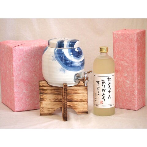 父の日 国産有田焼 焼酎サーバー1500cc木代付セット(14.5×15.5cm 1.1kg)井上酒造 おとうさんありがとう樫樽熟成本格麦焼酎 (大分県) 720ml