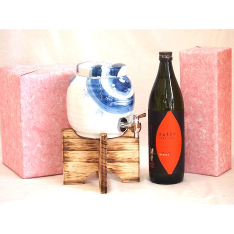 国産有田焼 焼酎サーバー1500cc木代付セット(14.5×15.5cm 1.1kg)濱田酒造 本格芋焼酎 海童焼き芋仕込み (鹿児島県) 900ml