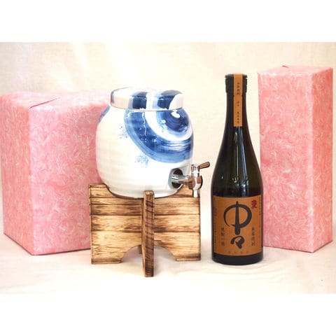 国産有田焼 焼酎サーバー1500cc木代付セット(14.5×15.5cm 1.1kg)黒木本店 本格麦焼酎 中々 (宮崎県) 720ml