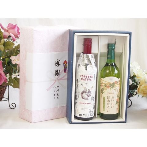 春の贈り物便り 感謝の贈り物ボックス イタリア黒葡萄品種赤ワインと国産ワインセット(国産葡萄100%使用 おいしい日本ワイン 白ワイン やや辛口(山梨県)720mlフィリペッティ ゴールド ブリュット (イタリア) 750ml