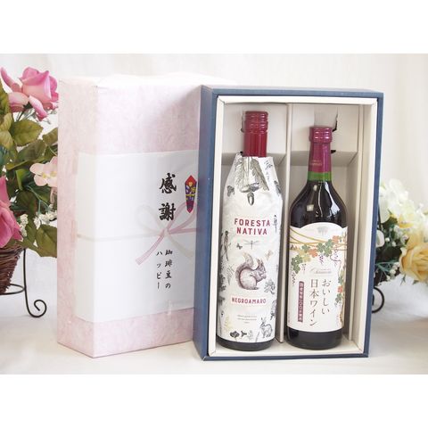 春の贈り物便り 感謝の贈り物ボックス イタリア黒葡萄品種赤ワインと国産ワインセット(国産葡萄100%使用 おいしい日本ワイン 赤ワイン 中口(山梨県)720mlフィリペッティ ゴールド ブリュット (イタリア) 750ml