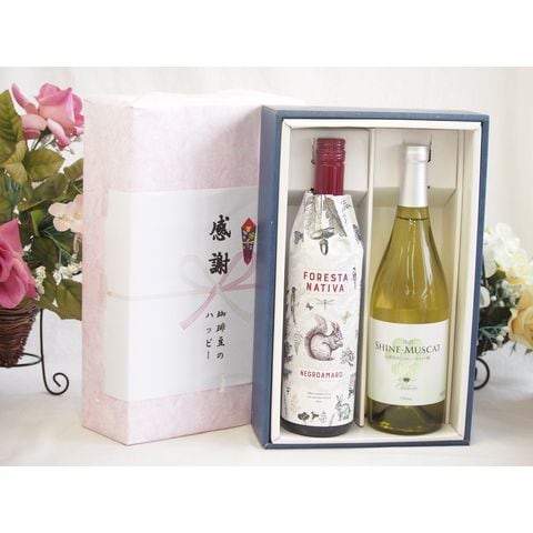 春の贈り物便り 感謝の贈り物ボックス イタリア黒葡萄品種赤ワインと国産ワインセット(シャインマスカット100白ワイン やや甘口(山梨県)750mlフィリペッティ ゴールド ブリュット (イタリア) 750ml