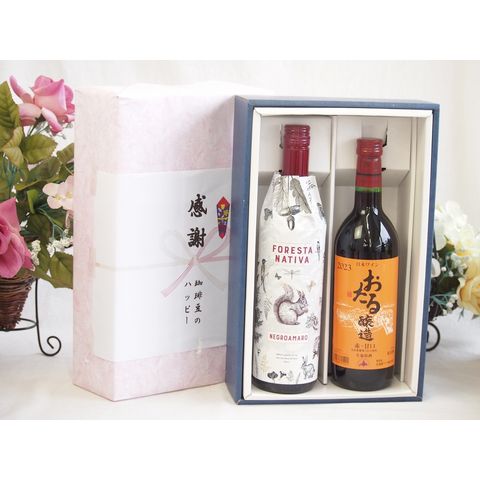 春の贈り物便り 感謝の贈り物ボックス イタリア黒葡萄品種赤ワインと国産ワインセット(おたる醸造 赤ワイン 甘口(北海道)720mlフィリペッティ ゴールド ブリュット (イタリア) 750ml