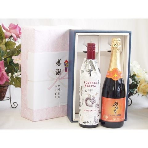 春の贈り物便り 感謝の贈り物ボックス イタリア黒葡萄品種赤ワインと国産ワインセット(おたる醸造 キャンベル赤スパークリングワインやや甘口(北海道)720mlフィリペッティ ゴールド ブリュット (イタリア) 750ml