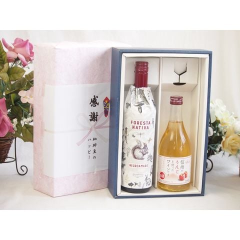 春の贈り物便り 感謝の贈り物ボックス イタリア黒葡萄品種赤ワインと国産ワインセット(信州のりんごを使ったワインです甘口(長野県)500mlフィリペッティ ゴールド ブリュット (イタリア) 750ml