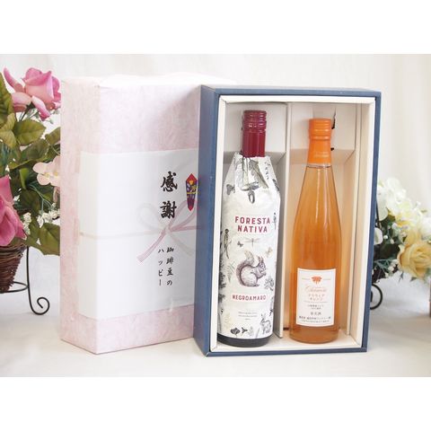 春の贈り物便り 感謝の贈り物ボックス イタリア黒葡萄品種赤ワインと国産ワインセット(シャンモリ デラウエア オレンジワインやや甘口(山梨県)500mlフィリペッティ ゴールド ブリュット (イタリア) 750ml