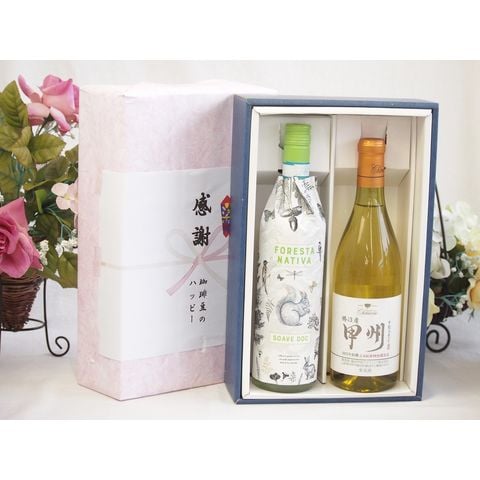 春の贈り物便り 感謝の贈り物ボックス イタリアソアーヴェ白ワインと国産ワインセット(勝沼産 甲州 白ワイン やや甘口(山梨県)720mlフォレスタ ナティヴァ ソアーヴェ (イタリア) 750ml