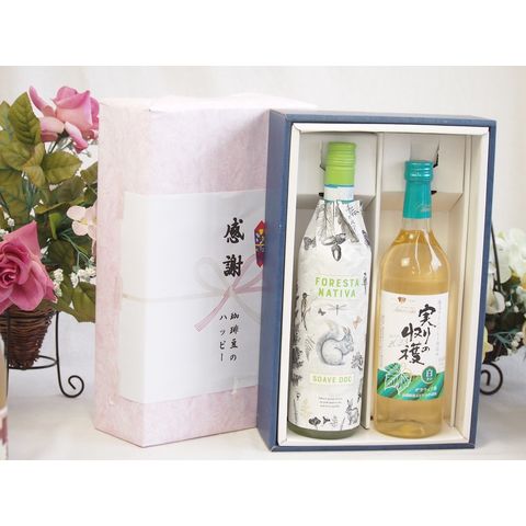 春の贈り物便り 感謝の贈り物ボックス イタリアソアーヴェ白ワインと国産ワインセット(実りの収穫 白辛口ワイン 辛口(山梨県)720mlフォレスタ ナティヴァ ソアーヴェ (イタリア) 750ml