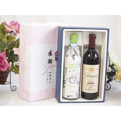 春の贈り物便り 感謝の贈り物ボックス イタリアソアーヴェ白ワインと国産ワインセット(グランシャンモリ アッサンブラージュ 赤ワイン 重口(山梨県)750mlフォレスタ ナティヴァ ソアーヴェ (イタリア) 750ml
