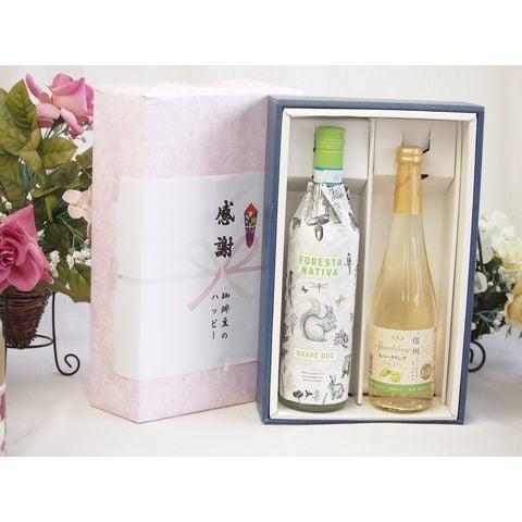 春の贈り物便り 感謝の贈り物ボックス イタリアソアーヴェ白ワインと国産ワインセット(信州シャインマスカット&ナイアガラ スパークリングワインやや甘口(長野県)500mlフォレスタ ナティヴァ ソアーヴェ (イタリア) 750ml