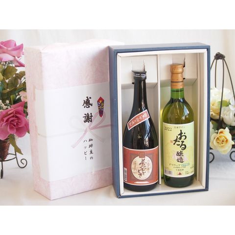春の贈り物便り 感謝の贈り物ボックスプレミアムな芋焼酎と国産ワインセット (おたる醸造 デラウエア 白ワイン やや甘口(北海道)720ml大分井上酒造夢のひととき23°720ml