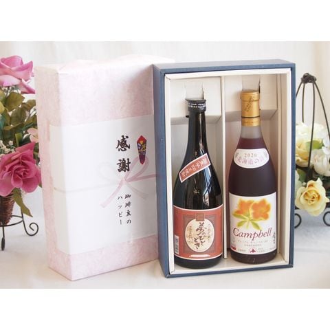 春の贈り物便り 感謝の贈り物ボックスプレミアムな芋焼酎と国産ワインセット (北海道の詩 プレミアムなキャンベル赤ワイン 甘口(北海道)720ml大分井上酒造夢のひととき23°720ml