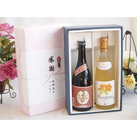 春の贈り物便り 感謝の贈り物ボックスプレミアムな芋焼酎と国産ワインセット (北海道の詩 完熟ナイヤガラ白ワイン 甘口(北海道)720ml大分井上酒造夢のひととき23°720ml