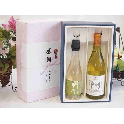 春の贈り物便り 感謝の贈り物ボックス 国産山梨県産スパークリングワインと国産ワインセット(勝沼産 甲州 白ワイン やや甘口(山梨県)720ml山梨県産葡萄100%甲州スパークリングワインやや辛口 375ml)