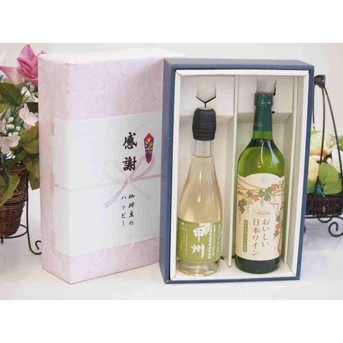 春の贈り物便り 感謝の贈り物ボックス 国産山梨県産スパークリングワインと国産ワインセット(国産葡萄100%使用 おいしい日本ワイン 白ワイン やや辛口(山梨県)720ml山梨県産葡萄100%甲州スパークリングワインやや辛口 375ml)