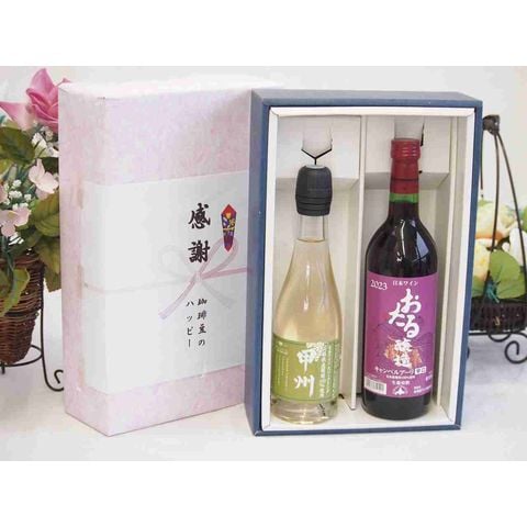春の贈り物便り 感謝の贈り物ボックス 国産山梨県産スパークリングワインと国産ワインセット(おたる醸造 キャンベルアーリ赤ワイン 辛口(北海道)720ml山梨県産葡萄100%甲州スパークリングワインやや辛口 375ml)