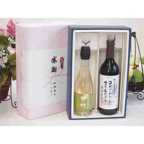 春の贈り物便り 感謝の贈り物ボックス 国産山梨県産スパークリングワインと国産ワインセット(酸化防止剤無添加 信州コンコード赤ワイン 甘口(長野県)720ml山梨県産葡萄100%甲州スパークリングワインやや辛口 375ml)