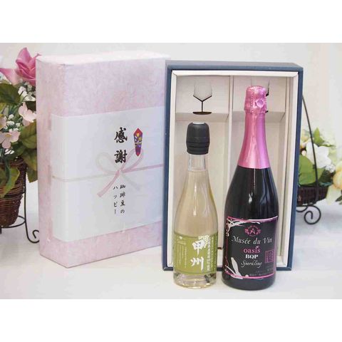 春の贈り物便り 感謝の贈り物ボックス 国産山梨県産スパークリングワインと国産ワインセット(MdV オアシス ブラッククイーンピンクロゼスパークリングワイン辛口(長野県)750ml山梨県産葡萄100%甲州スパークリングワインやや辛口 375ml)
