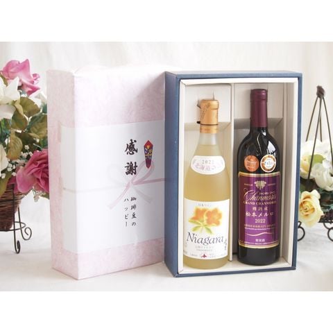春の贈り物便り 感謝の贈り物ボックス プレミアムなナイアガラワインと国産ワインセット 樽熟成松本メルロ赤ワイン フルボディ(山梨県)750mlおたる完熟ナイアガラ甘口白ワイン720ml