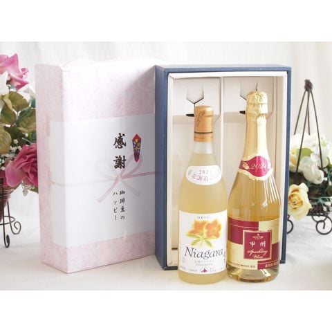 春の贈り物便り 感謝の贈り物ボックス プレミアムなナイアガラワインと国産ワインセット 甲州スパークリング 白ワインやや辛口(山梨県)720mlおたる完熟ナイアガラ甘口白ワイン720ml
