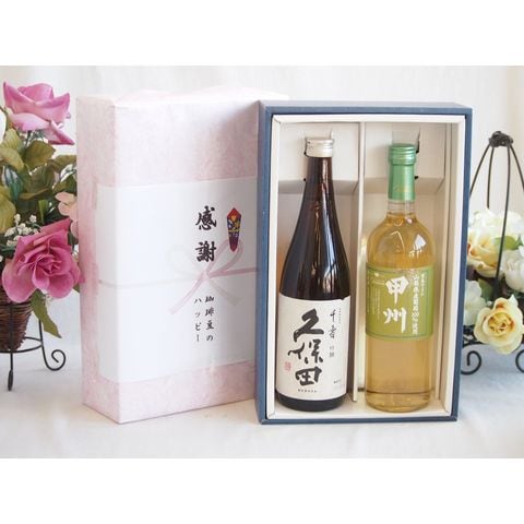 春の贈り物便り 感謝の贈り物ボックス 久保田千寿と国産ワインセット(山梨県産葡萄100%使用 甲州白ワイン やや辛口(山梨県)720ml日本酒千寿(新潟県)720ml