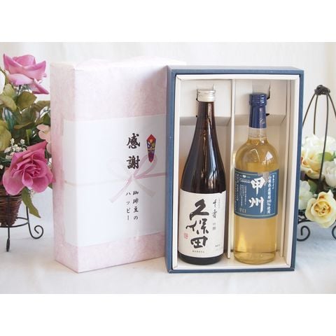 春の贈り物便り 感謝の贈り物ボックス 久保田千寿と国産ワインセット(山梨県産葡萄100%使用 甲州 辛口白ワイン 辛口(山梨県)720ml日本酒千寿(新潟県)720ml