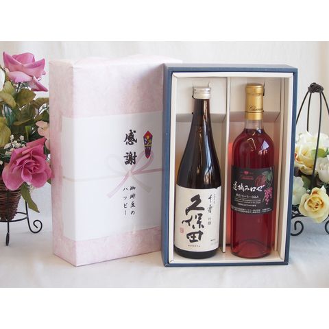 春の贈り物便り 感謝の贈り物ボックス 久保田千寿と国産ワインセット(遅摘みロゼ 完熟甘口ワイン 甘口(山梨県)720ml日本酒千寿(新潟県)720ml