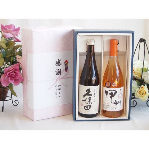 春の贈り物便り 感謝の贈り物ボックス 久保田千寿と国産ワインセット(かもし甲州 オレンジワイン 辛口(山梨県)720ml日本酒千寿(新潟県)720ml