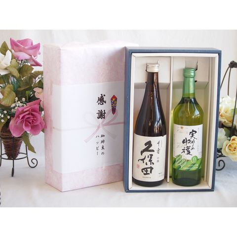 春の贈り物便り 感謝の贈り物ボックス 久保田千寿と国産ワインセット(実りの収穫 白甘口ワイン 甘口(山梨県)720ml日本酒千寿(新潟県)720ml