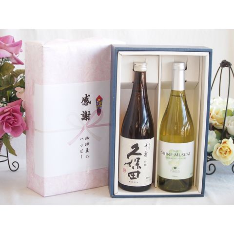 春の贈り物便り 感謝の贈り物ボックス 久保田千寿と国産ワインセット(シャインマスカット100白ワイン やや甘口(山梨県)750ml日本酒千寿(新潟県)720ml