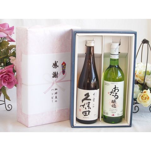 春の贈り物便り 感謝の贈り物ボックス 久保田千寿と国産ワインセット(おたる醸造 ナイアガラ 白ワイン やや甘口(北海道)720ml日本酒千寿(新潟県)720ml