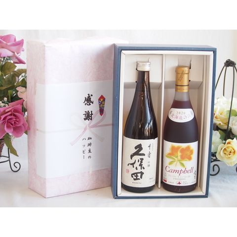 春の贈り物便り 感謝の贈り物ボックス 久保田千寿と国産ワインセット(北海道の詩 プレミアムキャンベル赤ワイン 甘口(北海道)720ml日本酒千寿(新潟県)720ml