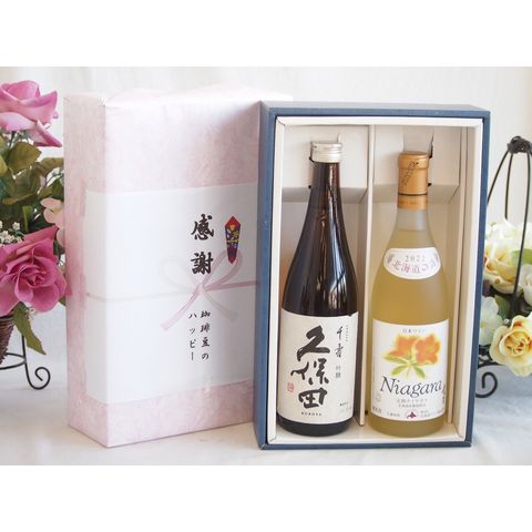 春の贈り物便り 感謝の贈り物ボックス 久保田千寿と国産ワインセット(北海道の詩 完熟ナイヤガラ白ワイン 甘口(北海道)720ml日本酒千寿(新潟県)720ml