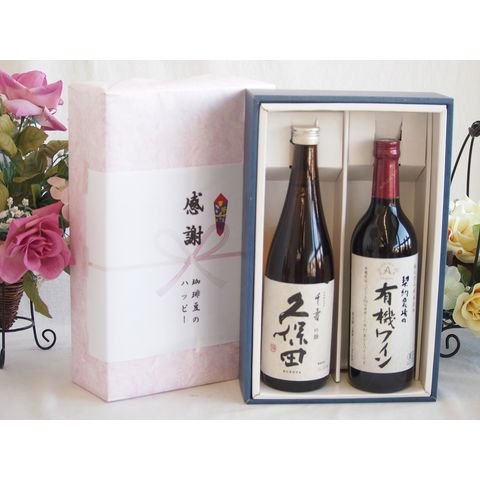 春の贈り物便り 感謝の贈り物ボックス 久保田千寿と酸化防止剤無添加ワインセット(酸化防止剤無添加 契約農場の有機赤ワイン やや甘口(長野県)720ml日本酒千寿(新潟県)720ml