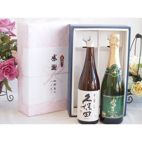 春の贈り物便り 感謝の贈り物ボックス 久保田千寿と国産ワインセット(おたる醸造 ナイアガラス白パークリングワインやや甘口(北海道)720ml日本酒千寿(新潟県)720ml