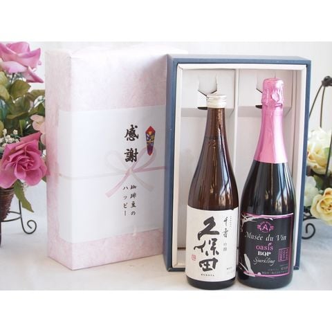 春の贈り物便り 感謝の贈り物ボックス 久保田千寿と国産ワインセット(MdV オアシス ブラッククイーンピンクロゼスパークリングワイン辛口(長野県)750ml日本酒千寿(新潟県)720ml